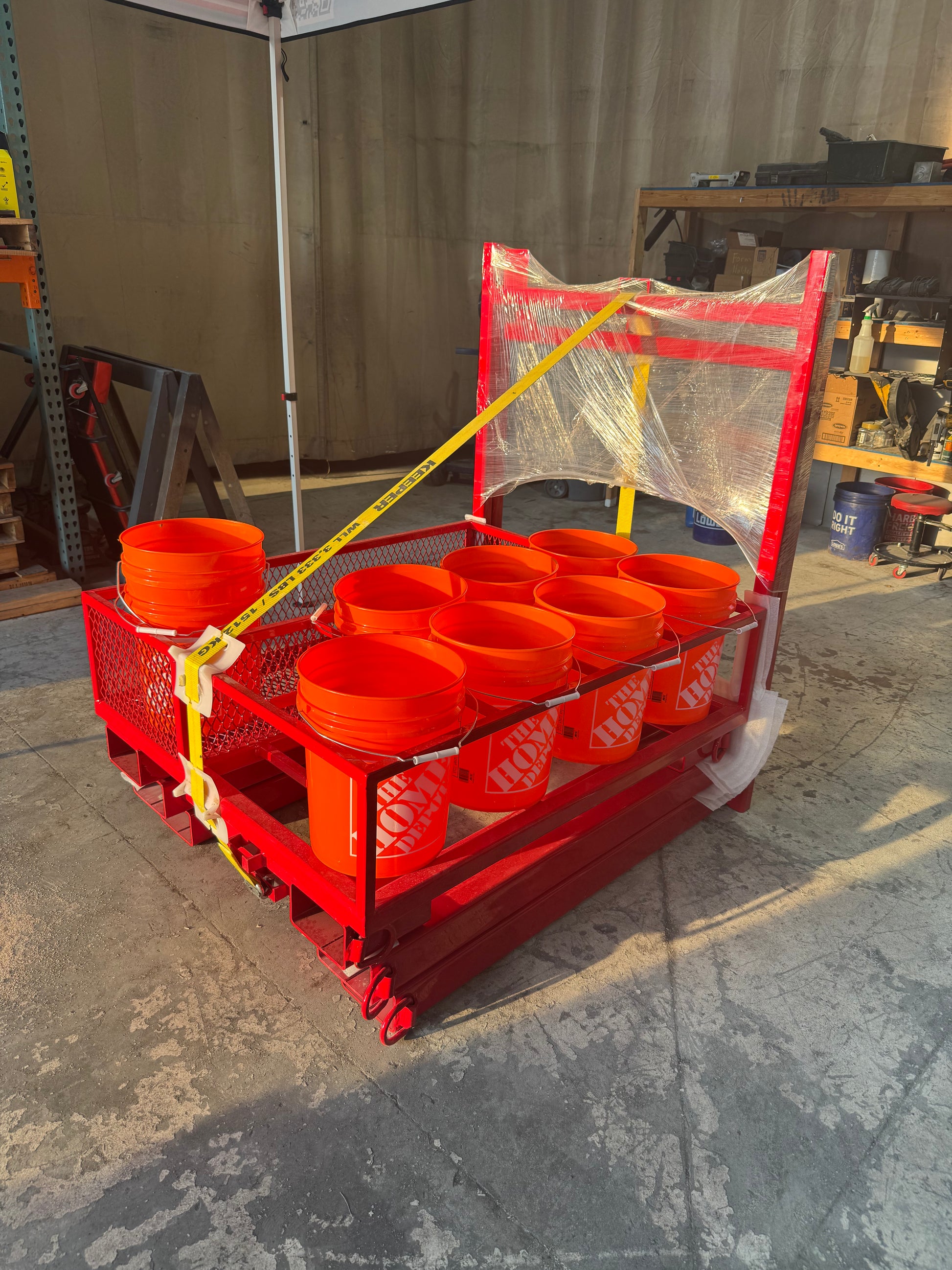 A Forkable and Craneable Bucket Caddy for 5 gallon buckets. It also has a compartment to hold walers.